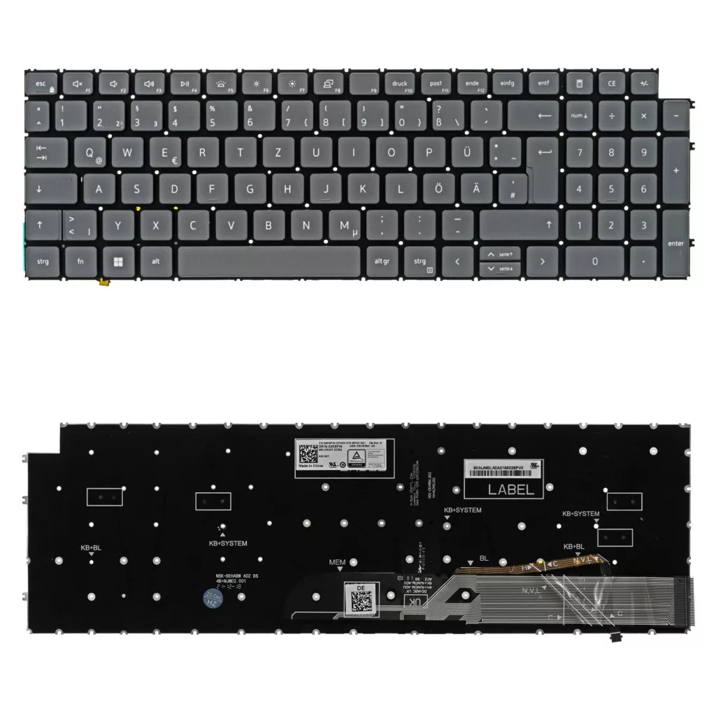 2K5FW gyári új szürke német háttérvilágított laptop billentyűzet, keret nélkül