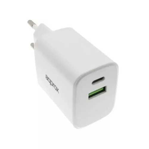 APPROX Telefontöltő - USB Type-C, USB-A port, 35W gyorstöltő + 1m USB Type-C kábel, Fehér