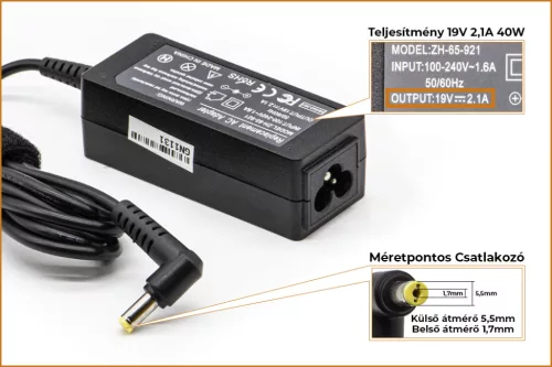Helyettesítő, új 40 Wattos laptop töltő Acer laptophoz.