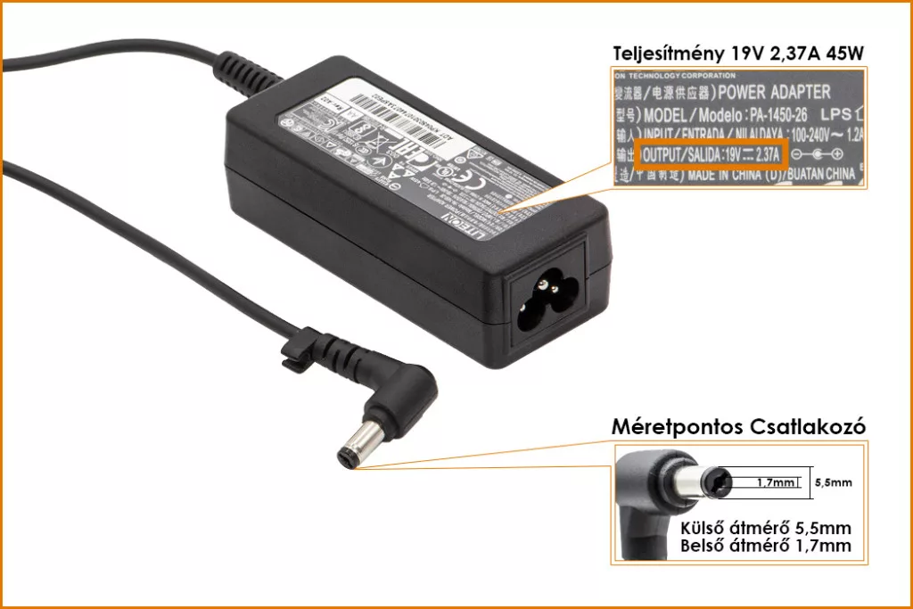 Eredeti, Gyári 45 Wattos laptop töltő Acer laptophoz.