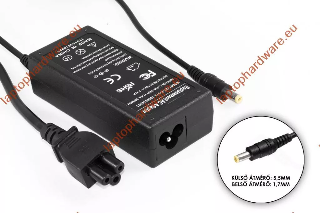 Használt gyárival megegyező minőségű 65 Wattos helyettesítő netbook töltő Acer laptopokhoz. 2 év csere garanciával.