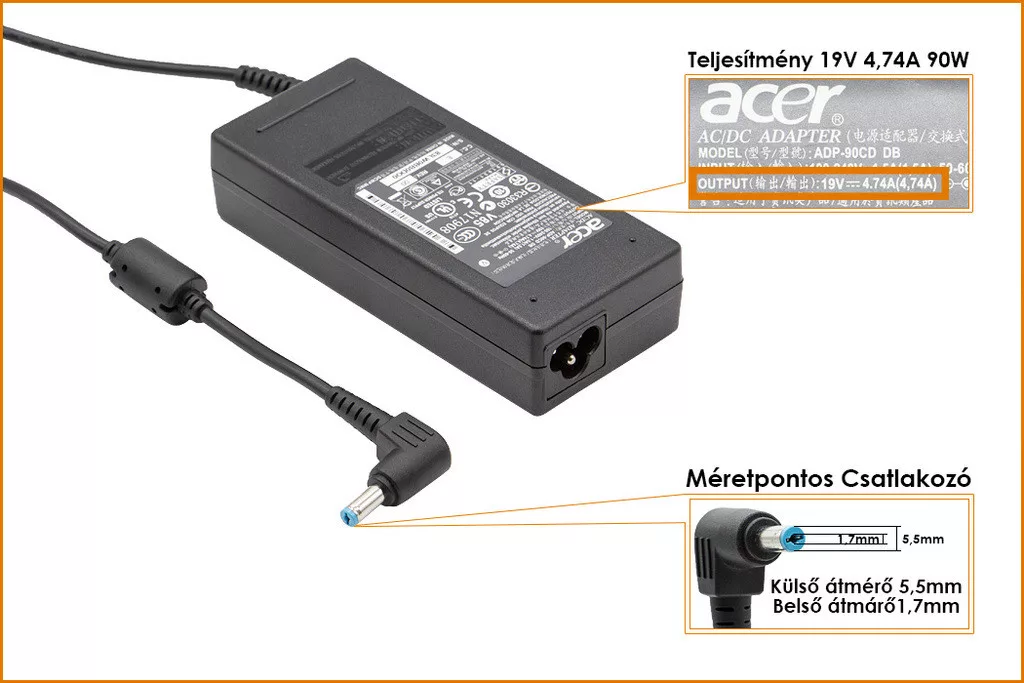 Eredeti, Gyári 90 Wattos laptop töltő Acer laptophoz.