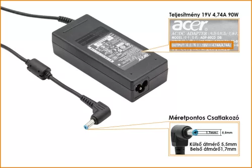 Acer 19V 4.74A 90W gyári új laptop töltő, ADP-90CD DB, PA-1900