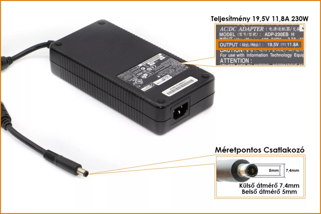 Acer, Asus, MSI, Delta 19V 11.8A 230W gyári új töltő (ADP-230EB H, KP.2300H.001)