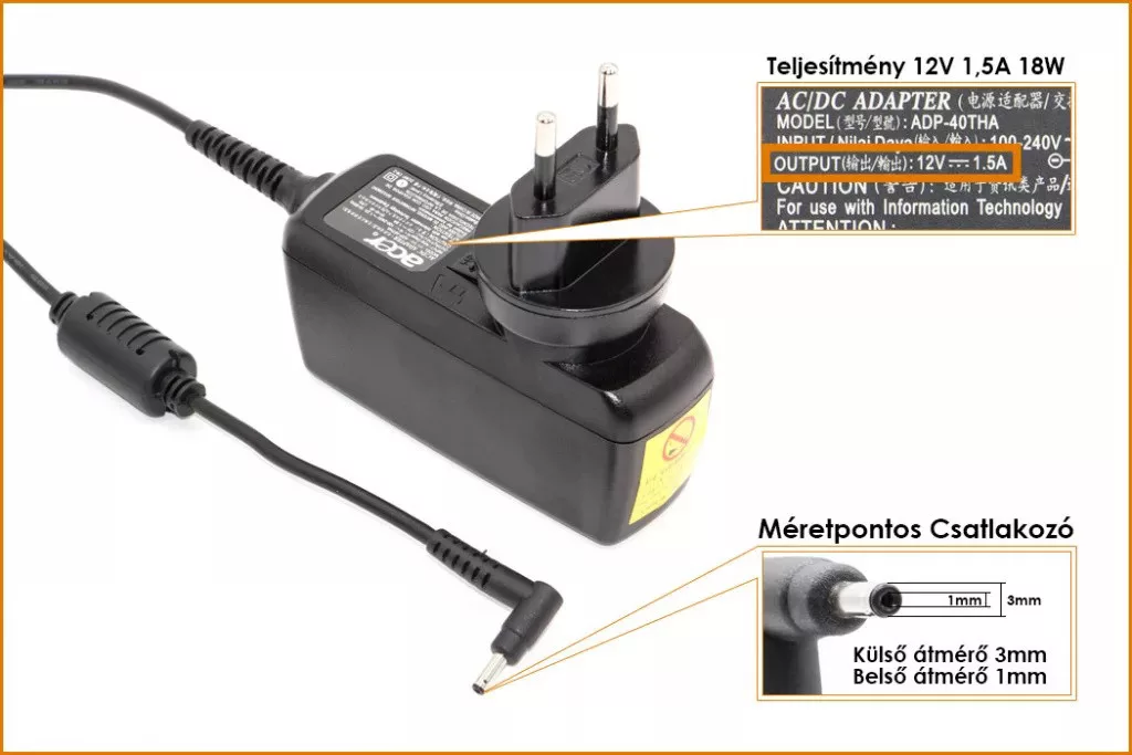 Acer Iconia Tab A100, A200, A500 12V 1.5A 18W használt gyári tablet töltő (PSA18R-120P, AP.0180P.002)