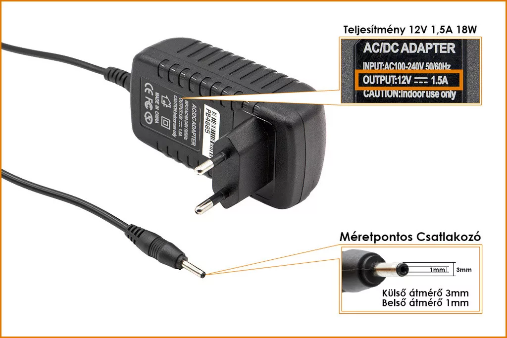 Acer Iconia Tab A100, A200, A500 12V 1.5A 18W helyettesítő új fali csatlakozós tablet töltő