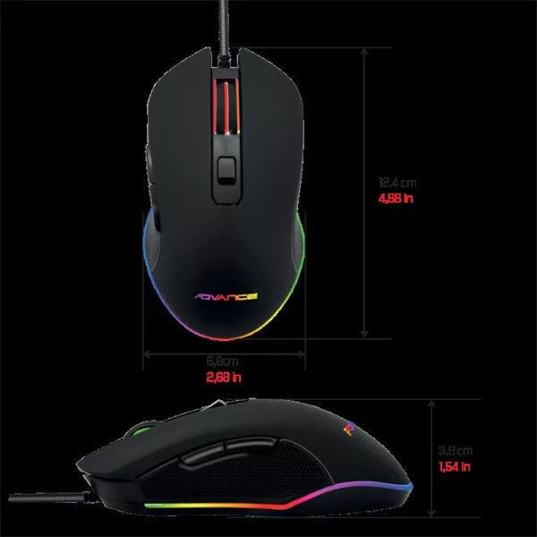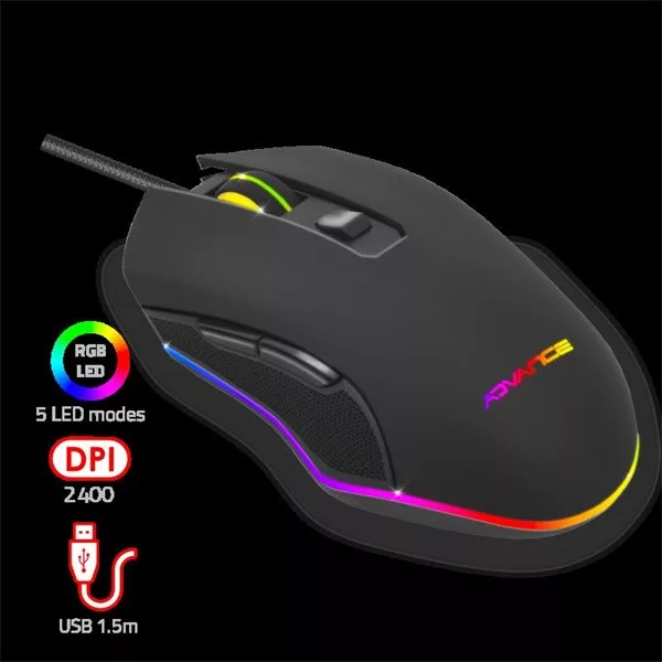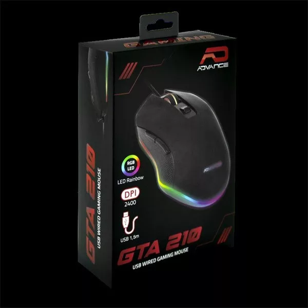 Advance Egér - GTA 210 (2400 DPI, 6 gomb, RGB, fekete)