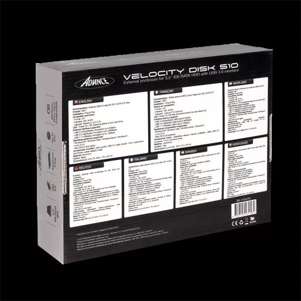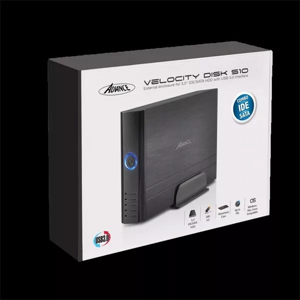 Advance Külső HDD Ház 3.5" - VELOCITY DISK S10 (USB-A3.0 to SATA/IDE, külső táp, fekete)