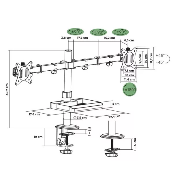Advance Monitor Asztali konzol - XTENDMOUNTS Dual (17-32", Max.: 2x9kg, dönthető, forgatható, fekete)