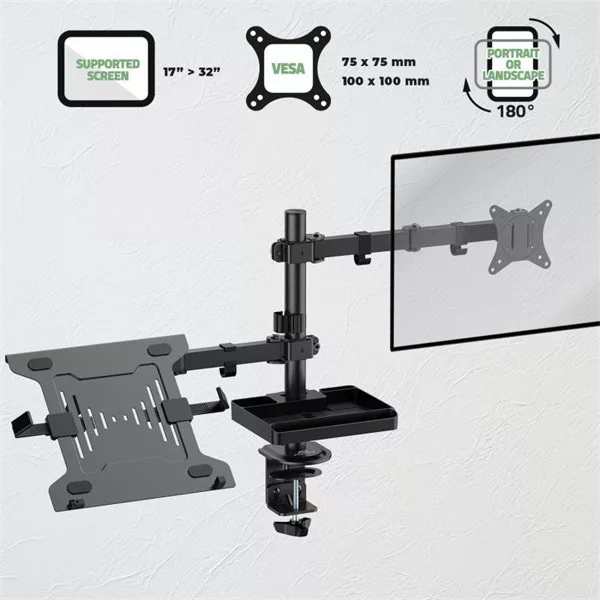 Advance Monitor/Notebook Asztali konzol - XTENDMOUNTS FLEX (17-32", Max.: 2x9kg, dönthető, forgatható, fekete)