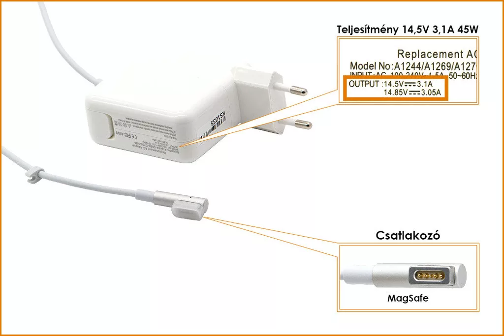 Kiváló mínőségű 45 Wattos laptop töltő Apple Macbook Air laptophoz.