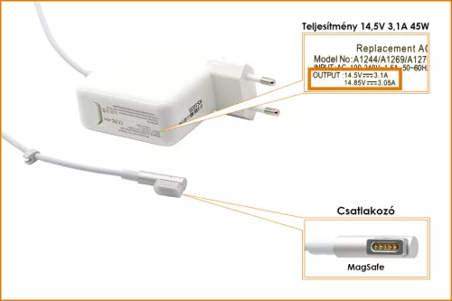 Apple 14.5V 3.1A 45W MagSafe helyettesítő új töltő (A1244)
