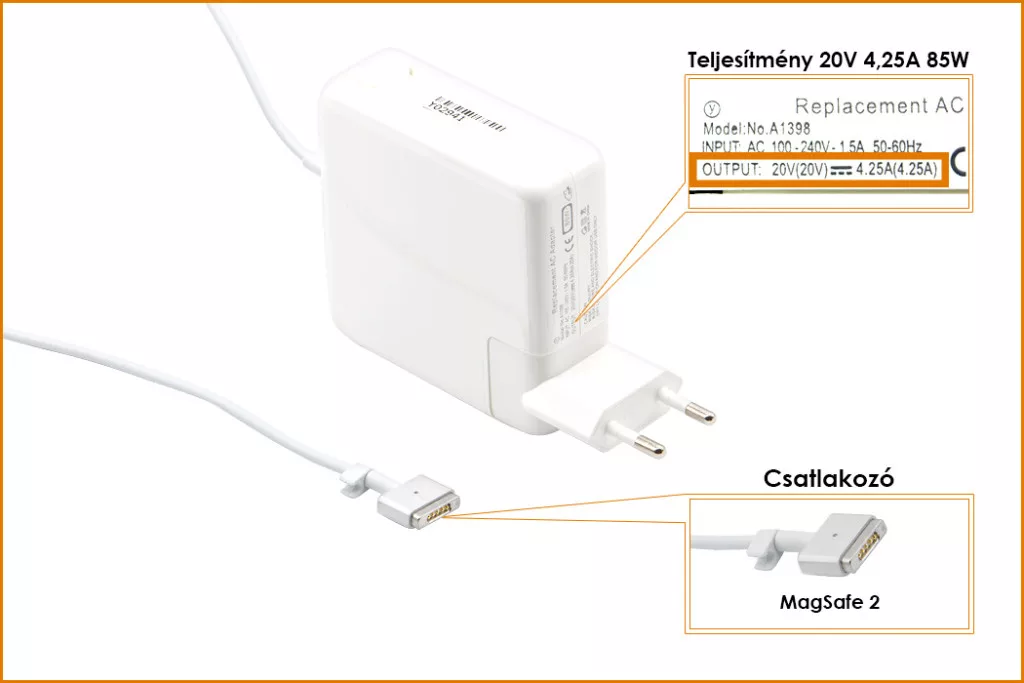 Kiváló mínőségű 85 Wattos laptop töltő Apple Macbook laptophoz.