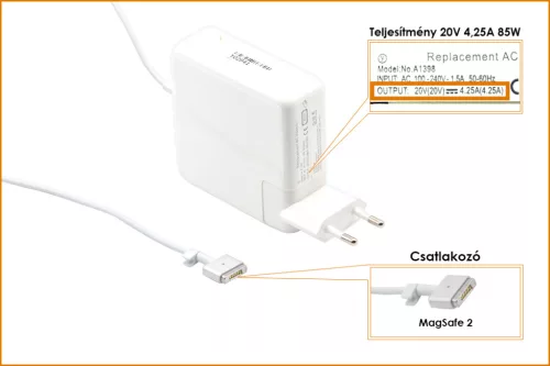 Apple 20V 4.25A 85W MagSafe 2 helyettesítő új töltő (A1424)