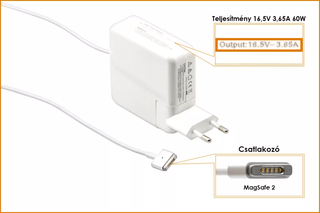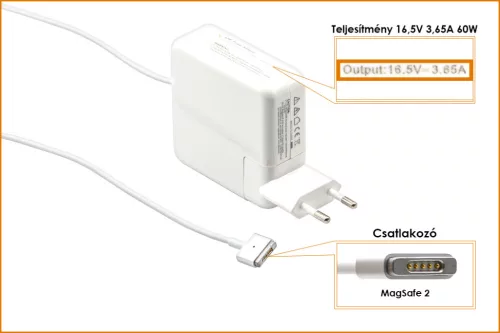 Apple MacBook 16.5V 3.65A 60W MagSafe 2 helyettesítő töltő, A1435, A1184