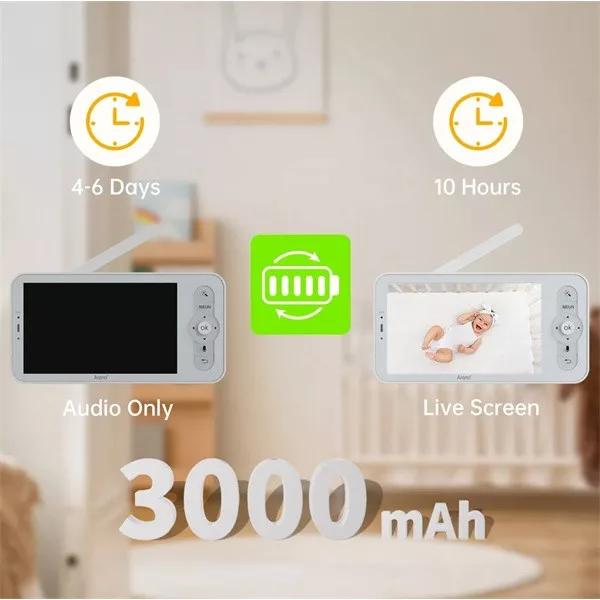 Arenti bébiőr szett - AINANNY + 5" LCD (3MP, sírás-, hőmérséklet-, páratartalom figyelés, microSD, mikrofon, hangszóró)