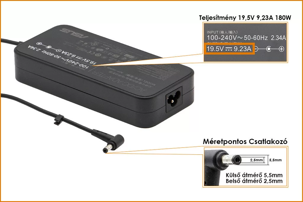 Eredeti, Gyári 180 Wattos laptop töltő Asus laptophoz.