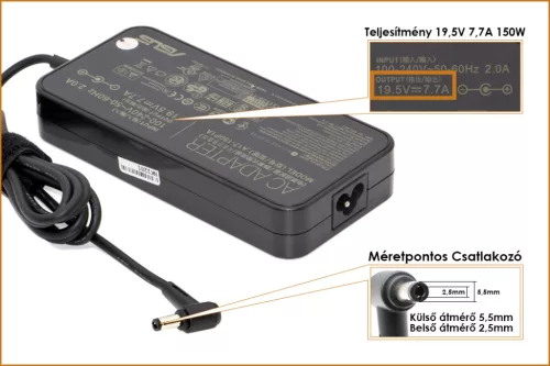 Asus 19,5V 7,7A 150W gyári új töltő (csatlakozó 5.5x2,5mm) (0A001-00080800)