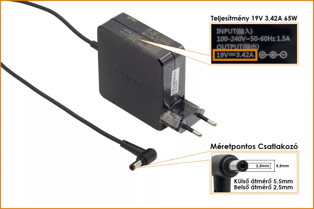 Eredeti, Gyári 65 Wattos laptop töltő Asus laptophoz.