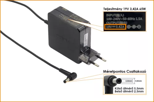 Asus 19V 3.42A 65W gyári új töltő (EXA1208EH, PA-1650-78)