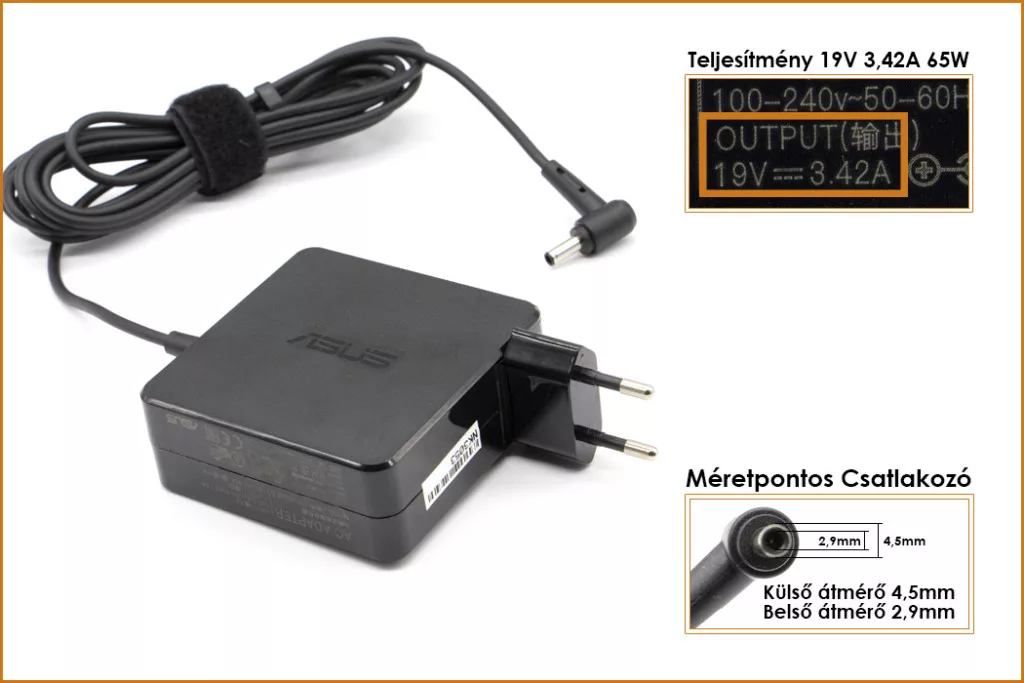 Asus 19V 3.42A 65W gyári új töltő, PA-1650-48, (csatlakozó átmérő: 4,5mm/2,9mm)