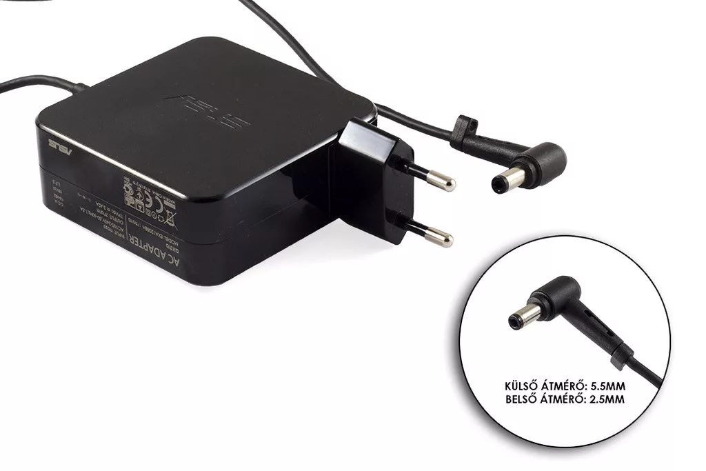 Asus 19V 3.42A 65 wattos gyári töltő a legújabb Asus laptopokhoz, újfajta fali dugós kasztniban. Ha nincs készleten a töltő, akkor ez gyári töltő teljesen jó helyette: Asus 19V 3,42A 65W hagyományos kasztnis gyári töltőA töltő helyettesítő verziója itt érhető el: Asus 19V 3,42A 65W helyettesítő laptop töltő