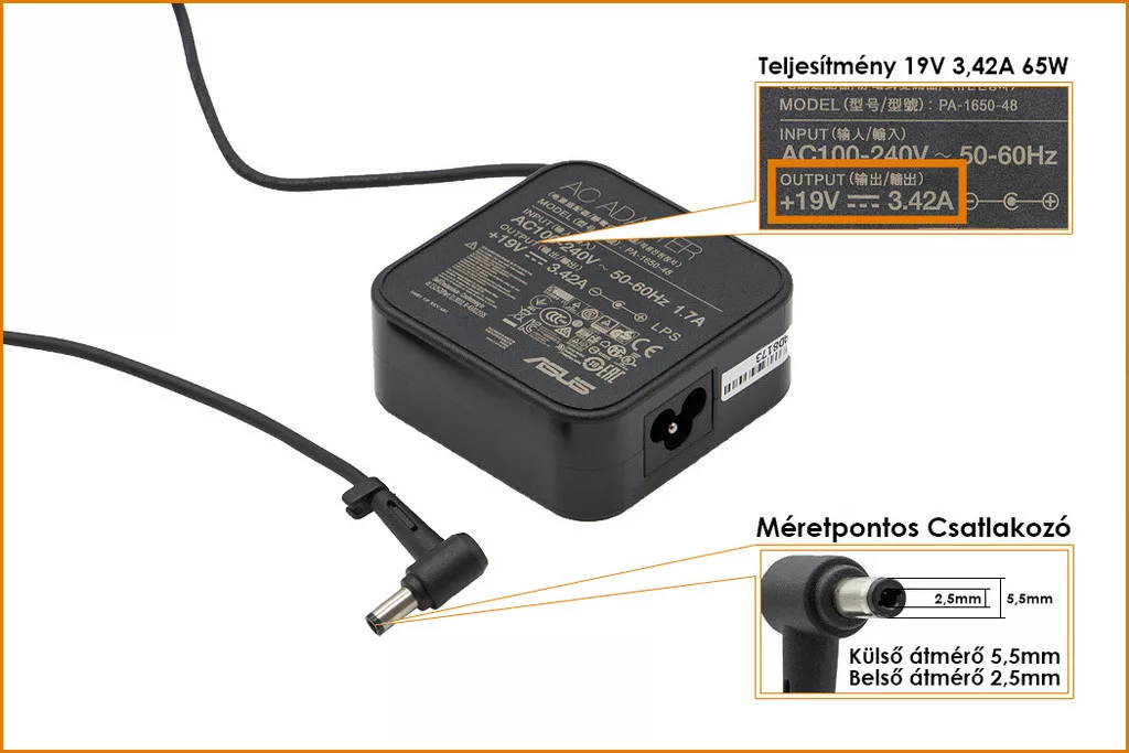 Asus 19V 3.42A 65W használt töltő (PA-1650-48, 0A001-00049400)