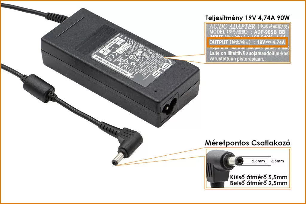 Eredeti, Gyári 90 Wattos laptop töltő Asus laptophoz.