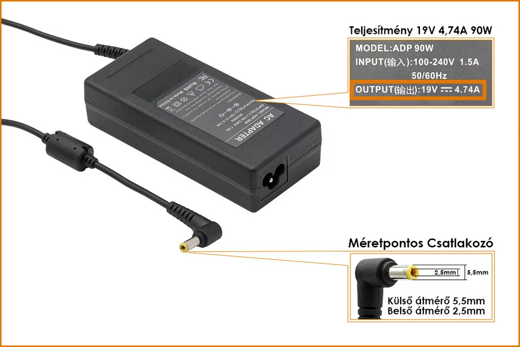 Kiváló mínőségű 90 Wattos laptop töltő Asus laptophoz.
