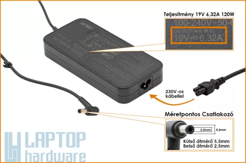 Használt 120 Wattos laptop töltő nagy teljesítményű Asus laptopokhoz, 3 hónap csere garanciával.