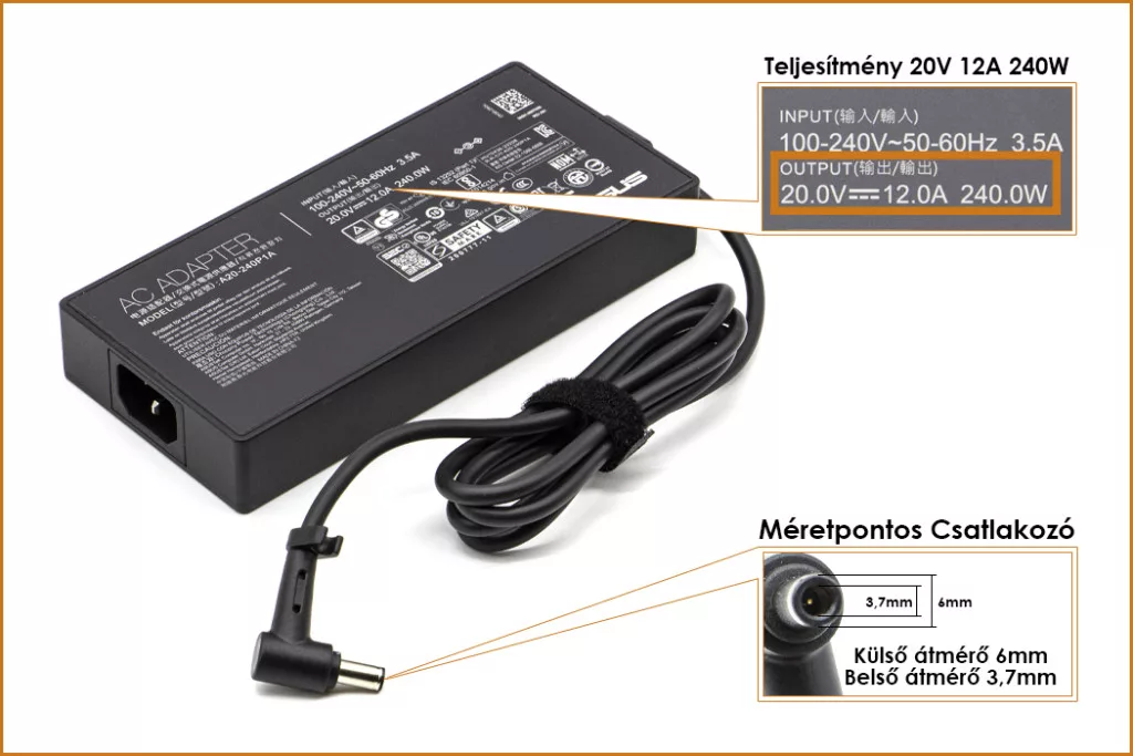 Asus 20V 12A 240W gyári új töltő (6x3,7mm CP) (0A001-00970100)