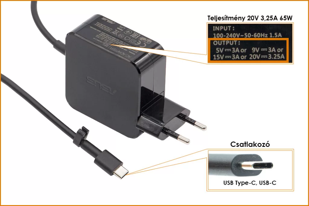 Asus 20V 3.25A 65W USB-C (Type-C) gyári új töltő (0A001-00443300)