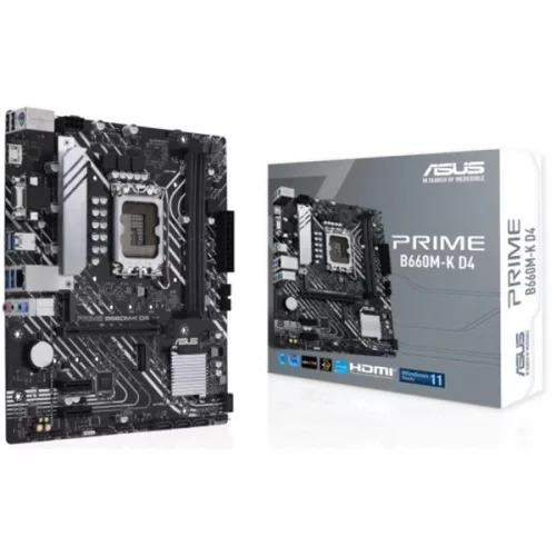 Asus Alaplap - Intel PRIME B660M-K D4 s1700 (B660, 2xDDR4 5333MHz, 4xSATA3, 2xM.2, HDMI+VGA)