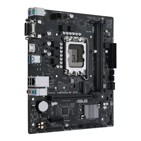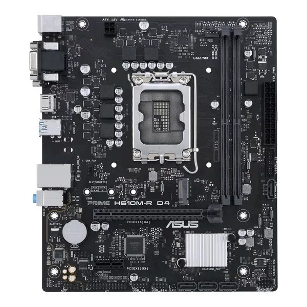 Asus Alaplap - Intel PRIME H610M-R D4-SI (H610, 2xDDR4 3200MHz, 4xSATA3, 1xM.2, HDMI+DVI+VGA)