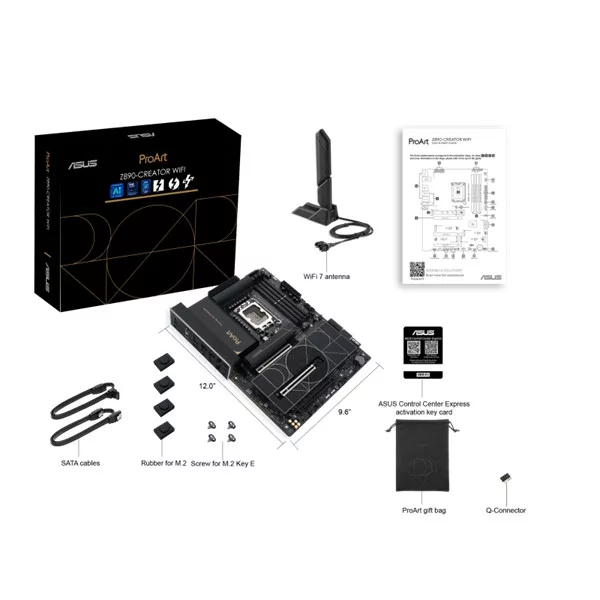 Asus Alaplap - Intel PROART Z890-CREATOR WIFI LGA1851 (Z890, ATX, 4xDDR5 9066+MHz, 4xSATA3, 5xM.2, HDMI+3xTB)