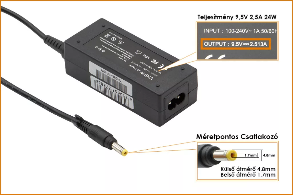 Kiváló mínőségű 24 Wattos laptop töltő Asus EEEPC laptophoz.