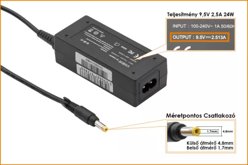 Asus EEEPC 9.5V 2.5A 24W helyettesítő új töltő (AD59930)