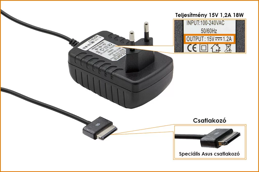 Kiváló mínőségű 18 Wattos laptop töltő Asus Transformer laptophoz.