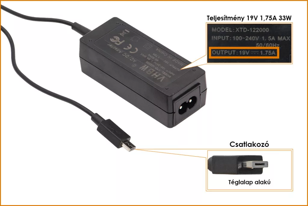 Asus X205TA, R209H 19V 1.75A 33W (M-PLUG) helyettesítő új töltő