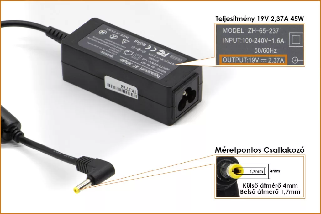 Gyárival megegyező minőségű helyettesítő laptop töltő.