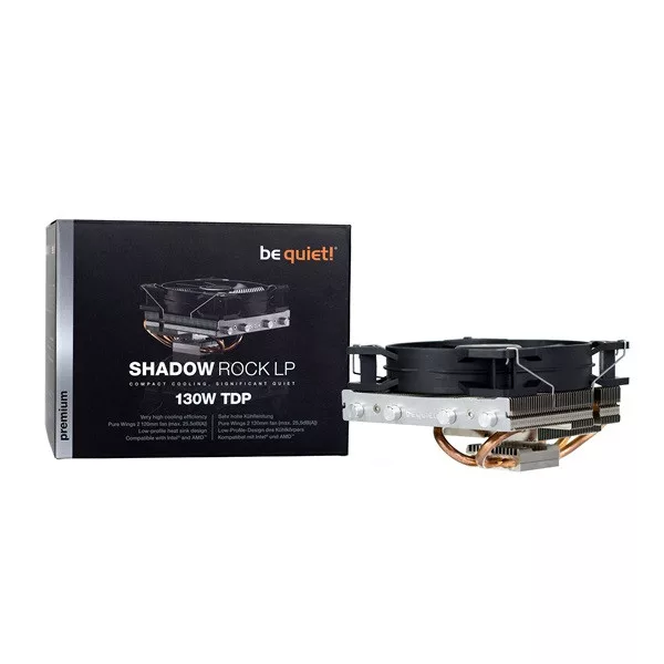 Négy darab 6 milliméteres hővezető csővel, aerodinamikailag optimalizált lapátokkal rendelkező 120 milliméteres Pure Wings 2 PWM vezérelt ventilátorral és a felhasználóbarát beépítési megoldással a Shadow Rock LP mindössze 25,5 dBA zajt generál maximum fordulatszámon, miközben magas, 130W TDP hűtőteljesítményt biztosít.