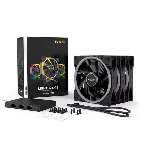 Be Quiet! Cooler 12cm - LIGHT WINGS 120mm PWM Triple-Pack (RGB, 1700rpm, 20,6dB, fekete)