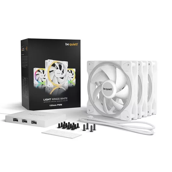 Be Quiet! Cooler 12cm - LIGHT WINGS WHITE 120mm PWM Triple Pack (RGB, 1700rpm, 20,6dB, fehér)