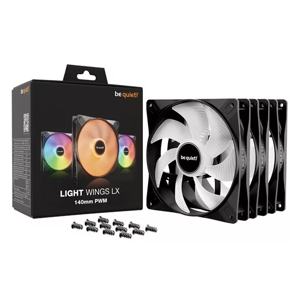 Be Quiet! Cooler 14cm - LIGHT WINGS LX 140mm PWM Triple-Pack (RGB, 1200rpm, 22,9dB, fekete)
