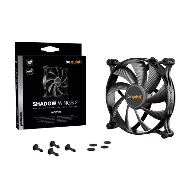 Be Quiet! Cooler 14cm - SHADOW WINGS 2 140mm PWM (900rpm, 14,9dB, fekete)