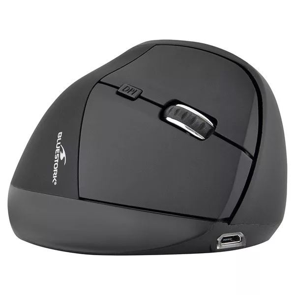 Bluestork Vezeték nélküli Egér - M-WL-ERGO-BK (Ergonomic, Rechargeable, 2.4G, 2400 DPI, optikai, fekete)