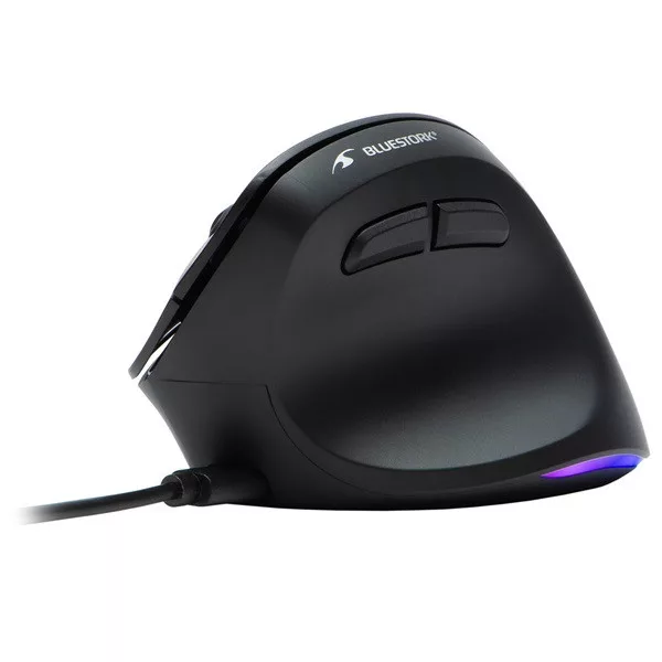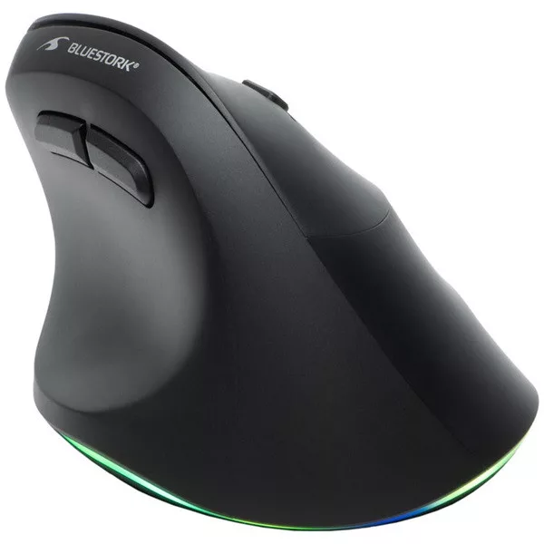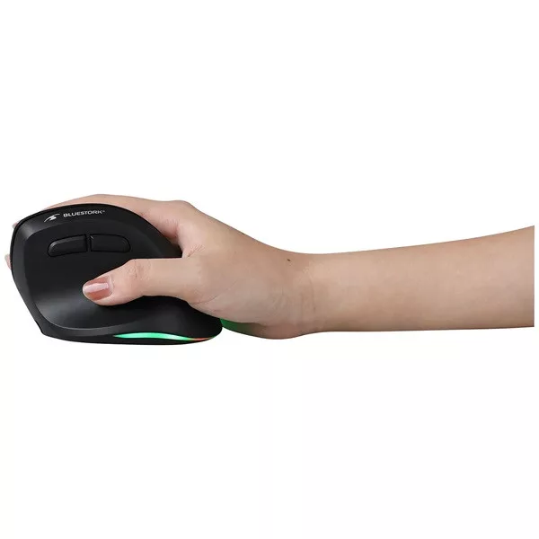 Bluestork Vezeték nélküli Egér - M-WL-ERGO-LUMI (Ergonomic, Rechargeable, 2400 DPI, 6 gomb, optikai, fekete)