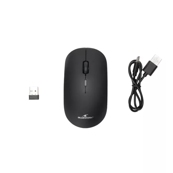 Bluestork Vezeték nélküli Egér - M-WL-OFF100-BLACK (Bluetooth, 2.4G, Rechargeable, 3200 DPI, optikai, fekete)