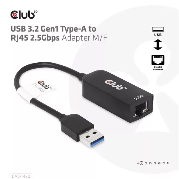 • Club 3d CAC-1420 USB 3.2 Gen1 Type-A – RJ45 2,5 Gb M/F