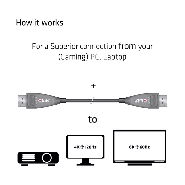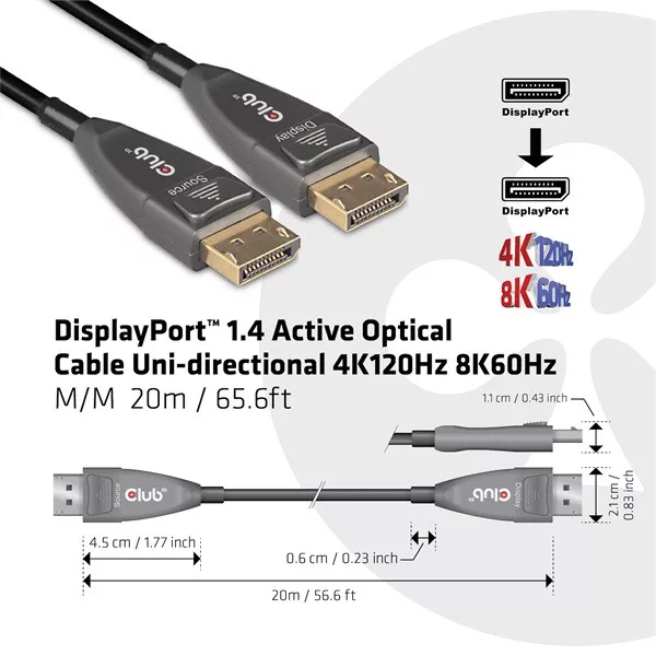 Club 3D Kábel - CAC-1079 (DisplayPort 1.4 Aktív Optikai Egyir. M/M, 8K@60Hz, 20m)